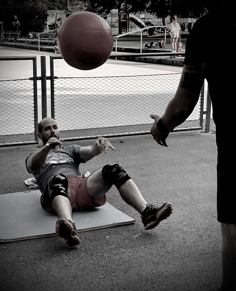Loving authentic atmosphere of the gym, coach’s direct and fair personality & Friday Partner WODs 40min. „